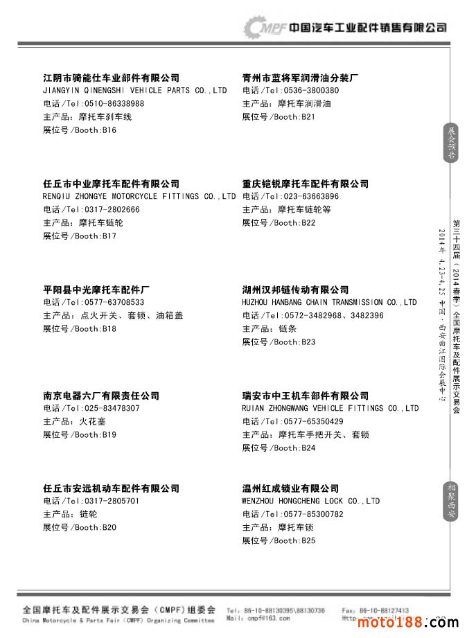第33屆秋季(南京)全國摩托車及配件展示交易會參展企業名錄