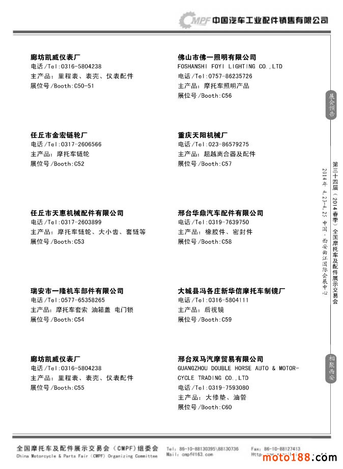 第33屆秋季(南京)全國摩托車及配件展示交易會參展企業名錄