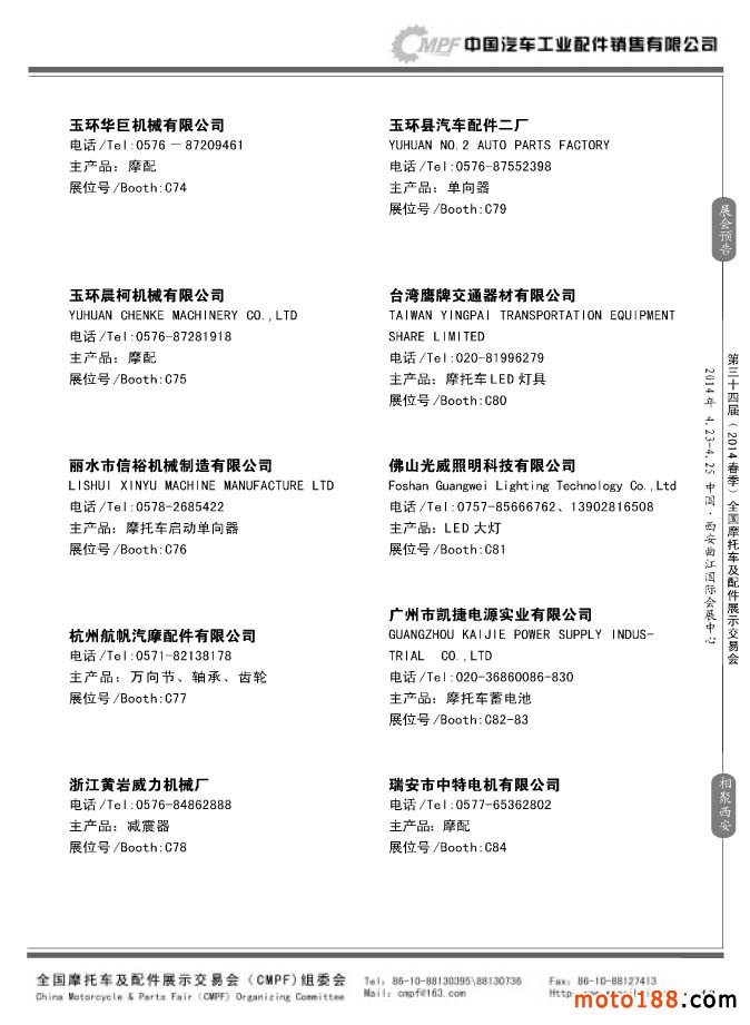 第33屆秋季(南京)全國摩托車及配件展示交易會(huì)參展企業(yè)名錄