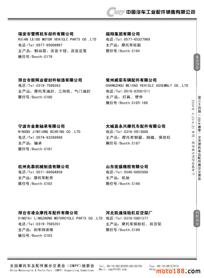 第33屆秋季(南京)全國摩托車及配件展示交易會參展企業名錄