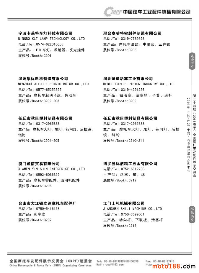 第33屆秋季(南京)全國摩托車及配件展示交易會參展企業名錄