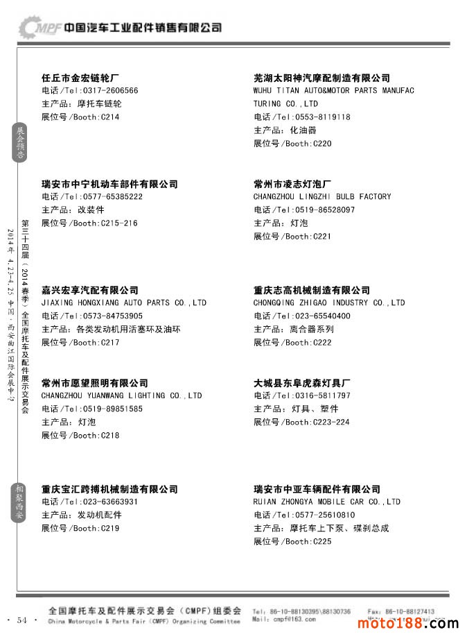 第33屆秋季(南京)全國摩托車及配件展示交易會參展企業(yè)名錄