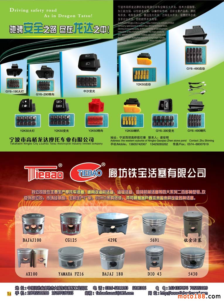 后彩54 寧波市高橋龍達(dá)摩托車業(yè)有限公司/廊坊鐵寶活塞有限公司