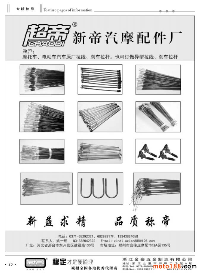 同時還有今年新編的第四期《中國摩托車配件外貿報》,本報除在省會市場發行之外,在廣州和重慶的市場都設有報架,讓客戶隨手取閱。本次報紙和雜志將會一起派送。今年的全摩會《會刊》仍然由中汽組委會派發,在進門口領參展證的同時,領取《會刊》,我們只負責制作,組委會負責發行。