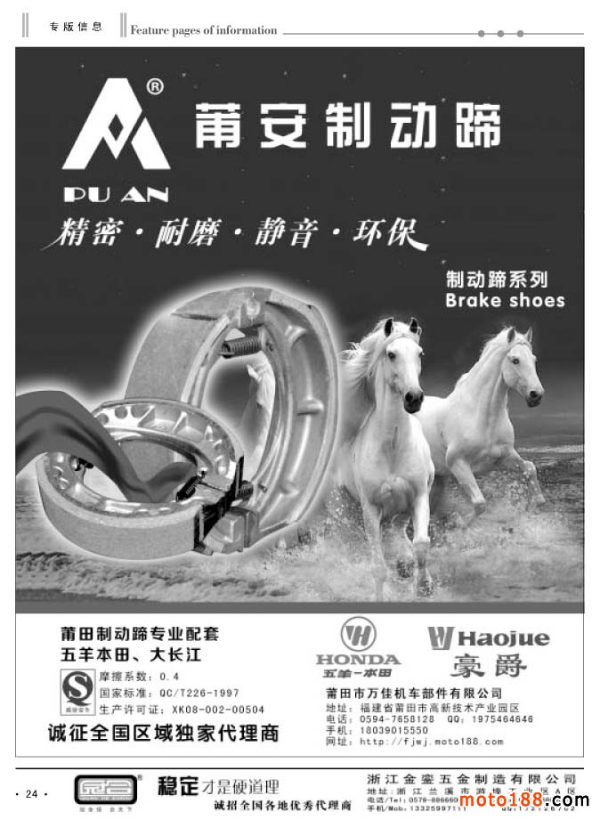 同時(shí)還有今年新編的第四期《中國(guó)摩托車(chē)配件外貿(mào)報(bào)》,本報(bào)除在省會(huì)市場(chǎng)發(fā)行之外,在廣州和重慶的市場(chǎng)都設(shè)有報(bào)架,讓客戶隨手取閱。本次報(bào)紙和雜志將會(huì)一起派送。今年的全摩會(huì)《會(huì)刊》仍然由中汽組委會(huì)派發(fā),在進(jìn)門(mén)口領(lǐng)參展證的同時(shí),領(lǐng)取《會(huì)刊》,我們只負(fù)責(zé)制作,組委會(huì)負(fù)責(zé)發(fā)行。