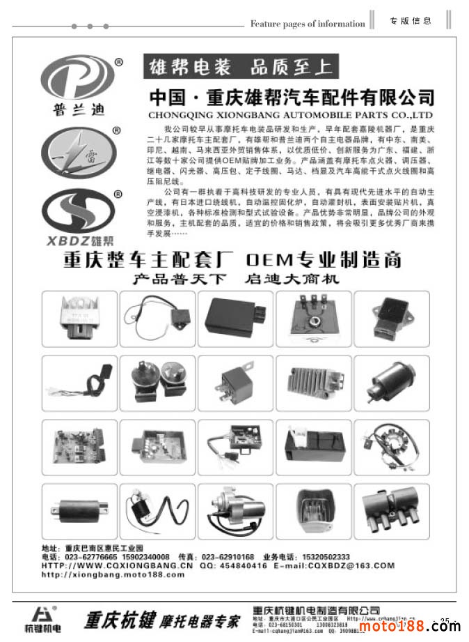 同時(shí)還有今年新編的第四期《中國(guó)摩托車配件外貿(mào)報(bào)》,本報(bào)除在省會(huì)市場(chǎng)發(fā)行之外,在廣州和重慶的市場(chǎng)都設(shè)有報(bào)架,讓客戶隨手取閱。本次報(bào)紙和雜志將會(huì)一起派送。今年的全摩會(huì)《會(huì)刊》仍然由中汽組委會(huì)派發(fā),在進(jìn)門口領(lǐng)參展證的同時(shí),領(lǐng)取《會(huì)刊》,我們只負(fù)責(zé)制作,組委會(huì)負(fù)責(zé)發(fā)行。