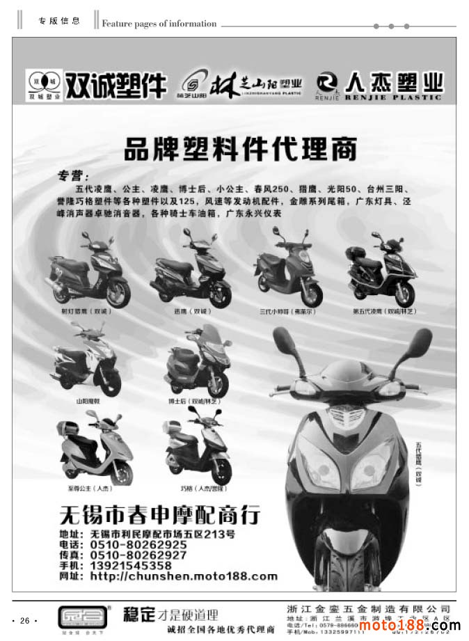 隨著秋季全摩會(huì)的召開,行業(yè)也進(jìn)入到收宮之戰(zhàn)。我們雜志也在謀兵布局于明年,初步打算,明年雜志采用全彩色印刷;雜志還以月刊出版,即一月一期。今年做了增刊的嘗試,上半年雜志較薄,下半年明顯厚實(shí)了,但我們還是尊重行業(yè)大部分人的意見,調(diào)整為月刊。會(huì)上我們也希望大家多提建設(shè)性的改進(jìn)意見,把行業(yè)碩果僅存的雜志做得更好。目前我們在行業(yè)沒有參照的樣板,我們只有摸索著石頭過河。在今年行業(yè)大環(huán)境不好的狀況下,我們的雜志增加了行業(yè)產(chǎn)業(yè)延伸的專題報(bào)道,如:小型通機(jī)、三輪摩托車等。希望企業(yè)能在這些信息中,發(fā)現(xiàn)新的商機(jī),走創(chuàng)新發(fā)展之路,為企業(yè)爭取更多的發(fā)展空間。