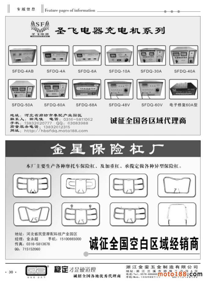 同時還有今年新編的第四期《中國摩托車配件外貿報》,本報除在省會市場發行之外,在廣州和重慶的市場都設有報架,讓客戶隨手取閱。本次報紙和雜志將會一起派送。今年的全摩會《會刊》仍然由中汽組委會派發,在進門口領參展證的同時,領取《會刊》,我們只負責制作,組委會負責發行。