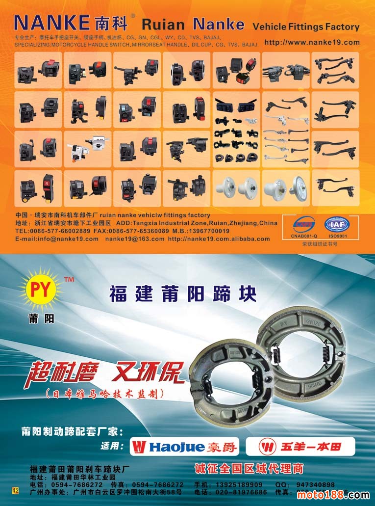 后彩42 瑞安市南科機車部件廠/福建莆田莆陽剎車蹄塊廠