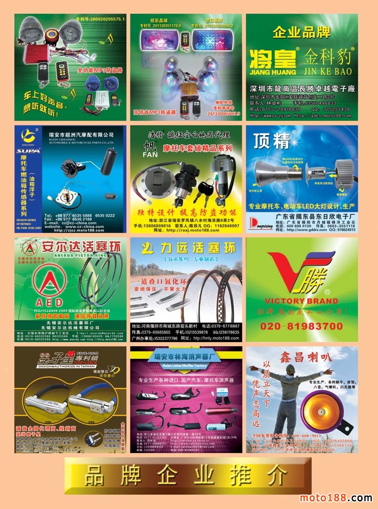 目前摩托車配件企業面臨比較嚴峻的市場現狀,但是我們了解到許多企業并不是坐以待毖,同時這個行業也在各個方面尋求突破,并且迎來了新的商機。我們雜志明年在信息發布上,也將增加和摩配行業有關的外延,如電動摩托車、三輪摩托車、助力車、小型通機等。這些零部件,都是我們配件廠能制造的,技術也是相通的。目前電動摩托、三輪摩托,小型通機市場都很不錯,產銷兩旺,有的還是有良好的發展遠景。除了通過紙媒來推廣和普及外,我們的網站也將同時增加這方面的動態信息,發布即時報道,開通這幾個板塊的專題,為行業傳輸更多的信息;我們的網站也將在今冬明春大改版,進一步擴容。在嚴峻的形勢下,我們一定要逆流而上,拓展生存和發展空間,同時我們也會將這幾方面的信息向行業傳遞,供行業企業決策參考。當然我們更要在市場的第一線增加發行,補充完善這幾方面的信息數據庫。這些工作先從各省會城市開始,由大市場向小市場拓展,充分利用現行發行網絡的功能,增加不同行業和市場的發行。