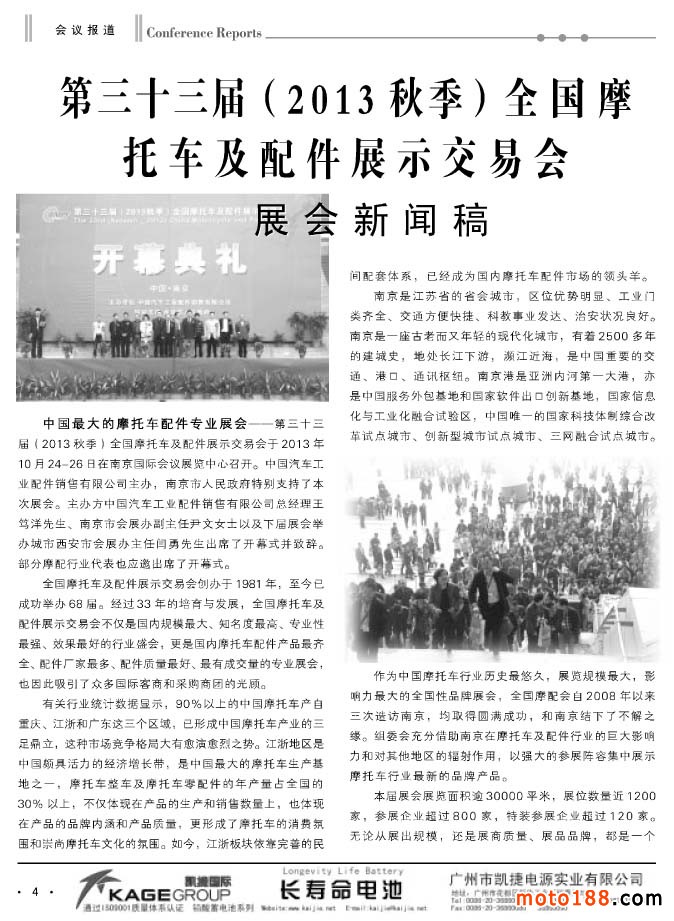 隨著全摩會的閉幕,今年的配件行業經營也進入到收宮階段,北方的天氣也漸漸轉冷,北方的市場也逐步趨淡。今年的市場銷售整體都不太好,無論是外貿還是內銷市場,我們雜志在今年也很努力,但是也能明顯地感覺到市場的寒意。盡管如此,我們仍然取得了較好的成績:我們對華東市場進行了精耕細作,走訪了市場的每一個客戶,搜集更新了市場的資料,并在南京秋摩會和重慶摩博會上將華東市場的第一手資料送給了企業;同時,在廣州市場也更新了最新的市場資料,并在秋摩會將這本資料送給了行業同仁。