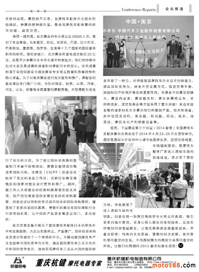 隨著全摩會(huì)的閉幕,今年的配件行業(yè)經(jīng)營(yíng)也進(jìn)入到收宮階段,北方的天氣也漸漸轉(zhuǎn)冷,北方的市場(chǎng)也逐步趨淡。今年的市場(chǎng)銷(xiāo)售整體都不太好,無(wú)論是外貿(mào)還是內(nèi)銷(xiāo)市場(chǎng),我們雜志在今年也很努力,但是也能明顯地感覺(jué)到市場(chǎng)的寒意。盡管如此,我們?nèi)匀蝗〉昧溯^好的成績(jī):我們對(duì)華東市場(chǎng)進(jìn)行了精耕細(xì)作,走訪了市場(chǎng)的每一個(gè)客戶(hù),搜集更新了市場(chǎng)的資料,并在南京秋摩會(huì)和重慶摩博會(huì)上將華東市場(chǎng)的第一手資料送給了企業(yè);同時(shí),在廣州市場(chǎng)也更新了最新的市場(chǎng)資料,并在秋摩會(huì)將這本資料送給了行業(yè)同仁。