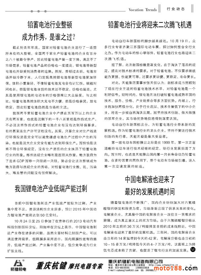 目前摩托車配件企業面臨比較嚴峻的市場現狀,但是我們了解到許多企業并不是坐以待毖,同時這個行業也在各個方面尋求突破,并且迎來了新的商機。我們雜志明年在信息發布上,也將增加和摩配行業有關的外延,如電動摩托車、三輪摩托車、助力車、小型通機等。這些零部件,都是我們配件廠能制造的,技術也是相通的。目前電動摩托、三輪摩托,小型通機市場都很不錯,產銷兩旺,有的還是有良好的發展遠景。除了通過紙媒來推廣和普及外,我們的網站也將同時增加這方面的動態信息,發布即時報道,開通這幾個板塊的專題,為行業傳輸更多的信息;我們的網站也將在今冬明春大改版,進一步擴容。在嚴峻的形勢下,我們一定要逆流而上,拓展生存和發展空間,同時我們也會將這幾方面的信息向行業傳遞,供行業企業決策參考。當然我們更要在市場的第一線增加發行,補充完善這幾方面的信息數據庫。這些工作先從各省會城市開始,由大市場向小市場拓展,充分利用現行發行網絡的功能,增加不同行業和市場的發行。