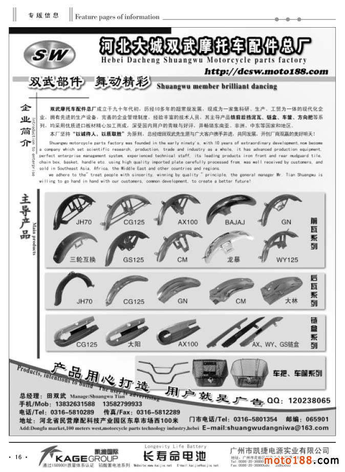 今年夏天,我們在完成華東市場的工作之外,結合2014年春季全摩會在西安召開的契機,我們基本完成對西北市場信息的采集。今年冬季我們將會對這些信息進行一一校核,在明年春天西安全摩會上,為行業奉上《西北市場指南》。這本書以西北自然行政區劃分,和前一個版本《西北》統規于《三北》不同。這三年,西北市場和東南市場發展完全不同,摩托車與配件在這些市場依然呈現上漲的勢頭,西北地區的市場面貌也不再是臟亂差,許多市場面貌也大為改觀,這本書在明春會奉獻給行業企業。《配件企業生產大全》繼濟南全摩會首發后,我們今年基本完成了在全國市場的派送,達到了預期的目標,計劃在明年下半年再次升級。
