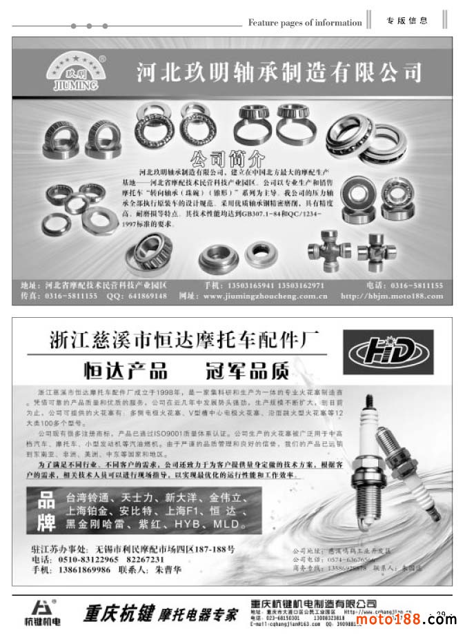 29 河北玖明軸承制造有限公司/浙江慈溪市恒達摩托車配件廠