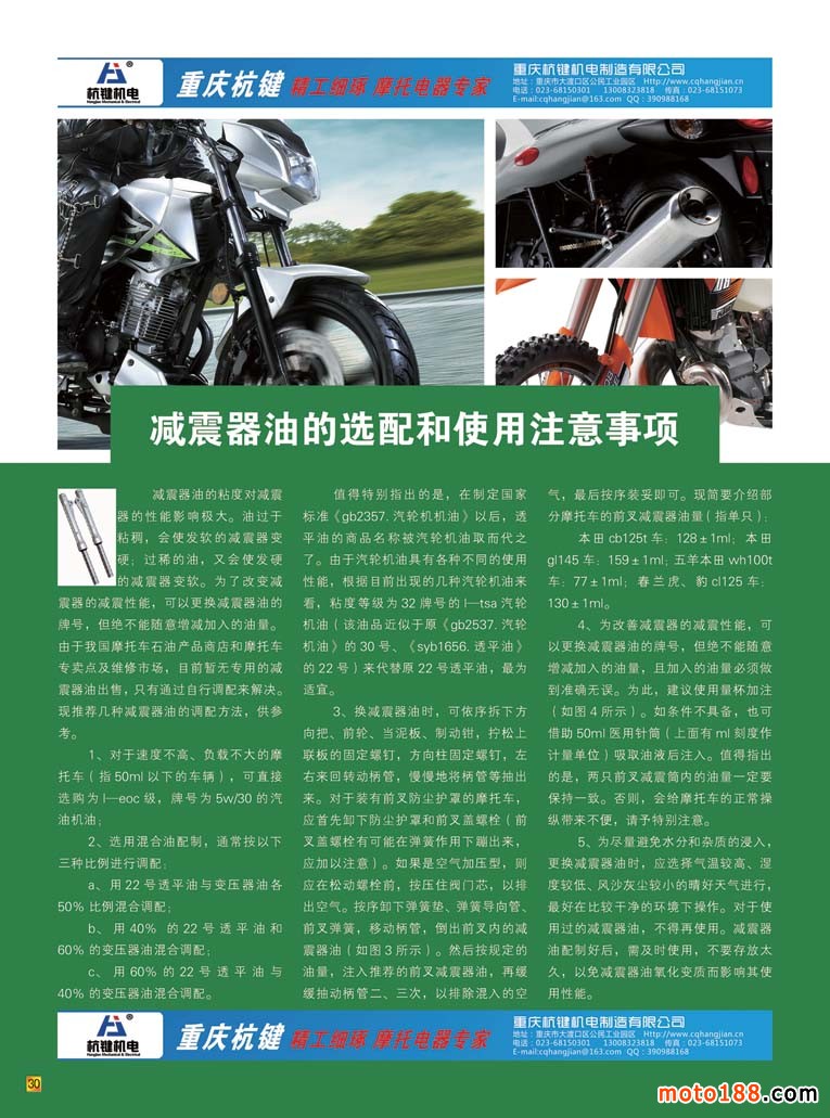 和這些歷經風雨在摩配行業堅守的同仁們一樣,我們也煉得自信與從容。新的一年我們雜志以全新的面貌出現,我們采用全彩色出刊,同時將我們的服務對象橫向延伸。與我們的同仁一樣,立足摩配,橫向拓展,內外兼修,努力做好雜志,除了提升外觀品相,更是注重在內容上的變化。每期雜志用十頁左右的文字來廣角掃描我們摩托車配件行業的子行業,這一期推出的是減震器專題。上一期化油器專題出刊以后,不光受到市場的歡迎,有些企業還把我們的雜志認真地收藏保存好,因為有不少信息對于他們的生產、經營都有一定幫助。對我們來說也是迫使我們更深入地了解摩配的各個子行業。自從前年摩托車行業開始強制提高排放標準以后,我們片面地認為化油器這個行業會被電噴完全取代,這個產業是不是已經步入到夕陽期?通過編排我們較深刻的對這一產業有所了解,制造之地一派欣欣向榮的景象,在我們摩托車業需求量減少之時,我們的制造廠已經在通機領域干得風生水起,有不少廠即使擴大產能也供不應求。當地地方政府也從這個產業得到許多實惠,一個雙贏的局面,這就是產業的正能量。其實市場如何變幻,總有一批做得好的龍頭企業在努力工作,打造自己的名牌,眼光不僅僅局限面前,更多地瞄準了國際市場。中國制造能漂洋過海,被國外消費者所接受,正是這樣一批行業精英為國家和民族在努力。