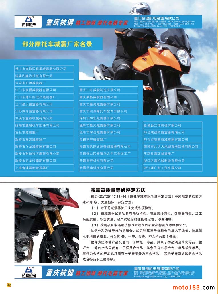 和這些歷經風雨在摩配行業堅守的同仁們一樣,我們也煉得自信與從容。新的一年我們雜志以全新的面貌出現,我們采用全彩色出刊,同時將我們的服務對象橫向延伸。與我們的同仁一樣,立足摩配,橫向拓展,內外兼修,努力做好雜志,除了提升外觀品相,更是注重在內容上的變化。每期雜志用十頁左右的文字來廣角掃描我們摩托車配件行業的子行業,這一期推出的是減震器專題。上一期化油器專題出刊以后,不光受到市場的歡迎,有些企業還把我們的雜志認真地收藏保存好,因為有不少信息對于他們的生產、經營都有一定幫助。對我們來說也是迫使我們更深入地了解摩配的各個子行業。自從前年摩托車行業開始強制提高排放標準以后,我們片面地認為化油器這個行業會被電噴完全取代,這個產業是不是已經步入到夕陽期?通過編排我們較深刻的對這一產業有所了解,制造之地一派欣欣向榮的景象,在我們摩托車業需求量減少之時,我們的制造廠已經在通機領域干得風生水起,有不少廠即使擴大產能也供不應求。當地地方政府也從這個產業得到許多實惠,一個雙贏的局面,這就是產業的正能量。其實市場如何變幻,總有一批做得好的龍頭企業在努力工作,打造自己的名牌,眼光不僅僅局限面前,更多地瞄準了國際市場。中國制造能漂洋過海,被國外消費者所接受,正是這樣一批行業精英為國家和民族在努力。