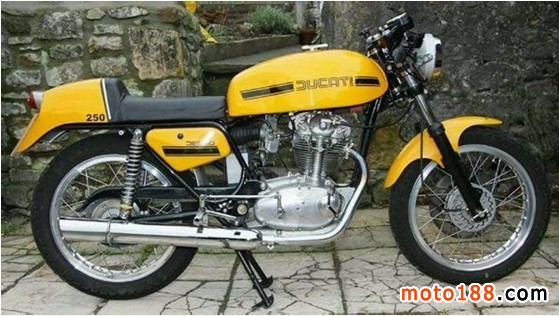 250desmo 生產(chǎn)年份1971引擎為單缸空氣冷氣四沖程;排量249;壓縮比9.7:1;5檔位;前鼓后鼓;整車質(zhì)量127公斤