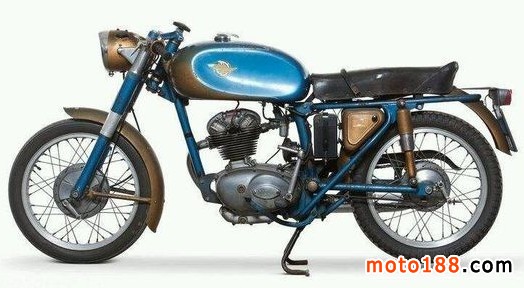 125sport 生產(chǎn)年份1955-1967引擎為空氣冷卻單缸四沖程;排量125;壓縮比8.0:1;最大馬力10hp7000rpm;四檔位;整車質(zhì)量100.5公斤;油箱17升