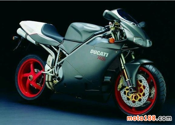 748S 生產年份2000-2002 引擎為液體冷卻四沖程雙氣缸;排量748;壓縮比11.5:1;最大馬力71kw11000rpm;最大扭矩73nm9000rpm;6檔位;整車質量196公斤;油箱17升;四分之一英里11.5秒;最高時速246.8公里/小時