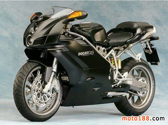 749 DARK 生產年份2004 引擎液體冷卻四沖程雙缸每缸四氣門;排量748;壓縮比11.7:1;最大馬力103hp10000rpm;最大扭矩77nm8500rpm;6檔位;整車質量199公斤;四分之一英里11.2秒;最高時速250公里/小時