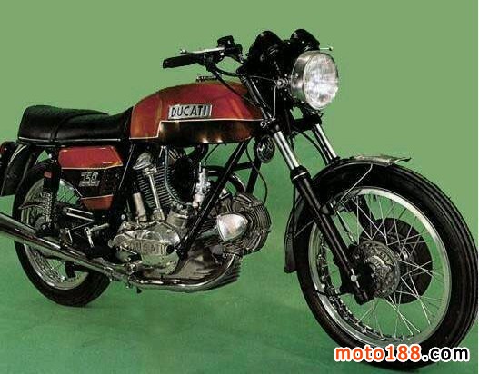 750 GT 生產年份1971-1974 引擎為空氣冷卻四沖程V型雙缸;排量748;壓縮比8.5:1;最大馬力57hp7700rpm;5檔位;整車質量185公斤;油箱17升