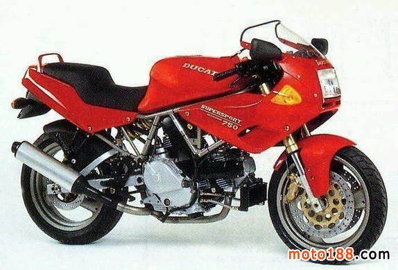 750 SS haif fairing 生產年份1992-1996 引擎為空氣冷卻四沖程雙缸SOHC;排量748;壓縮比9.5:1;最大馬力66hp8500rpm;最大扭矩72nm6500rpm;5檔位;整車質量193公斤;油箱17.5升;四分之一英里12.9秒;最高時速135英里/小時