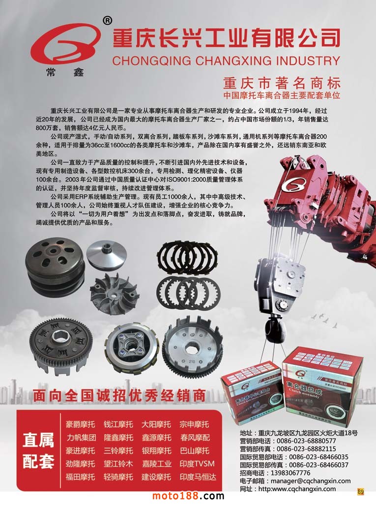 新的變革之后的《摩托車與配件》已經出了四個配件子產業的專題,通過這種形式的變革,我們對摩托車配件的微觀行業也有了越來越深入的了解。每一個子行業也都有做得不錯的龍頭企業,他們在這個子行業里通過橫向地拓展,觸角伸得也較廣泛。比如這一期是鏈條專題,其實不光摩托車用,電動車、汽車、工業機械....只要需要傳動的都有鏈條的身影。因而許多廠的產品也涉及了多行業,但是我們僅選擇與我們產業有關的產品做一般的技術報道;前沿行業作泛泛報道;市場運用方面則是盡可能以廣角報道。以前一些企業也在我們雜志上做過宣傳,因為我們認識水平淺,不容易突出重點品牌企業,因而在宣傳服務上也流于常規。但是通過這期專題后,我們了解到,像東華、恒久、順峰、雙獅、征和等都是這個行業的龍頭企業,而且這些龍頭企業后勁十足。他們不光在擴大產能生產;更是投入了相當的精力在搞科研;抑或引進國外的先進技術,不光在做大更是在做強,假以時日,他們也會在國際市場上占有一席之地。我們對這些企業充滿敬意,他們是民族工業的脊梁。雖然納稅沒有房地產企業多,也沒有金融和地產業的風光,但他們沒有固步自封,也不滿足現狀,帶著創新和發展的精神趕德超日超美,縮短與國際水平的差距,也正是因為有許多像這樣的實體產業,中國制造才能真正的做強。那些只制造虛的龐大GDP的、靠吸吮實體產業汁水而滋潤的和靠壟斷而光鮮的行業,在他們面前是多么的不堪。