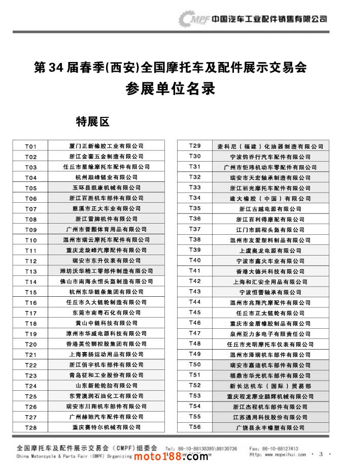 第34屆春季(西安)全國(guó)摩托車及配件展示交易會(huì)參展單位名錄
