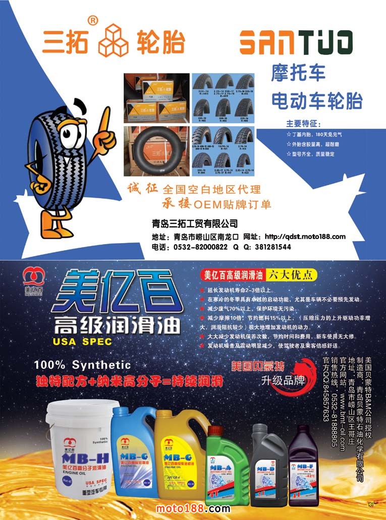 今年我們的雜志還涉及了三輪摩托車、電動摩托車和小型通機三個關連行業,在我們m.zjsoxnet.com網站上鏈接了三輪摩托車:sl .moto189com;電動摩托車dd .moto189.com;小型通機tj .moto189.com。前邊兩個字母分別是前兩個字的聲母很容易記住,大家有空可以去瀏覽。今年下半年我們將加大力量做好這三個網站,再往里面裝填更多內容,爭取用一到二年時間,像我們 m.zjsoxnet.com一樣成為行業的大型網站。