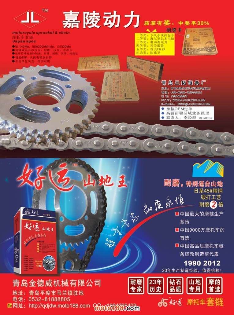 今年我們的雜志還涉及了三輪摩托車、電動摩托車和小型通機三個關連行業,在我們m.zjsoxnet.com網站上鏈接了三輪摩托車:sl .moto189com;電動摩托車dd .moto189.com;小型通機tj .moto189.com。前邊兩個字母分別是前兩個字的聲母很容易記住,大家有空可以去瀏覽。今年下半年我們將加大力量做好這三個網站,再往里面裝填更多內容,爭取用一到二年時間,像我們 m.zjsoxnet.com一樣成為行業的大型網站。
