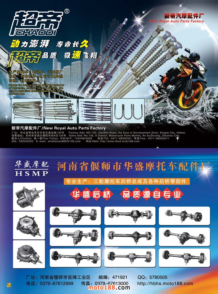內(nèi)102 新帝汽摩配件廠/102 河南省偃師市華盛摩托車配件廠