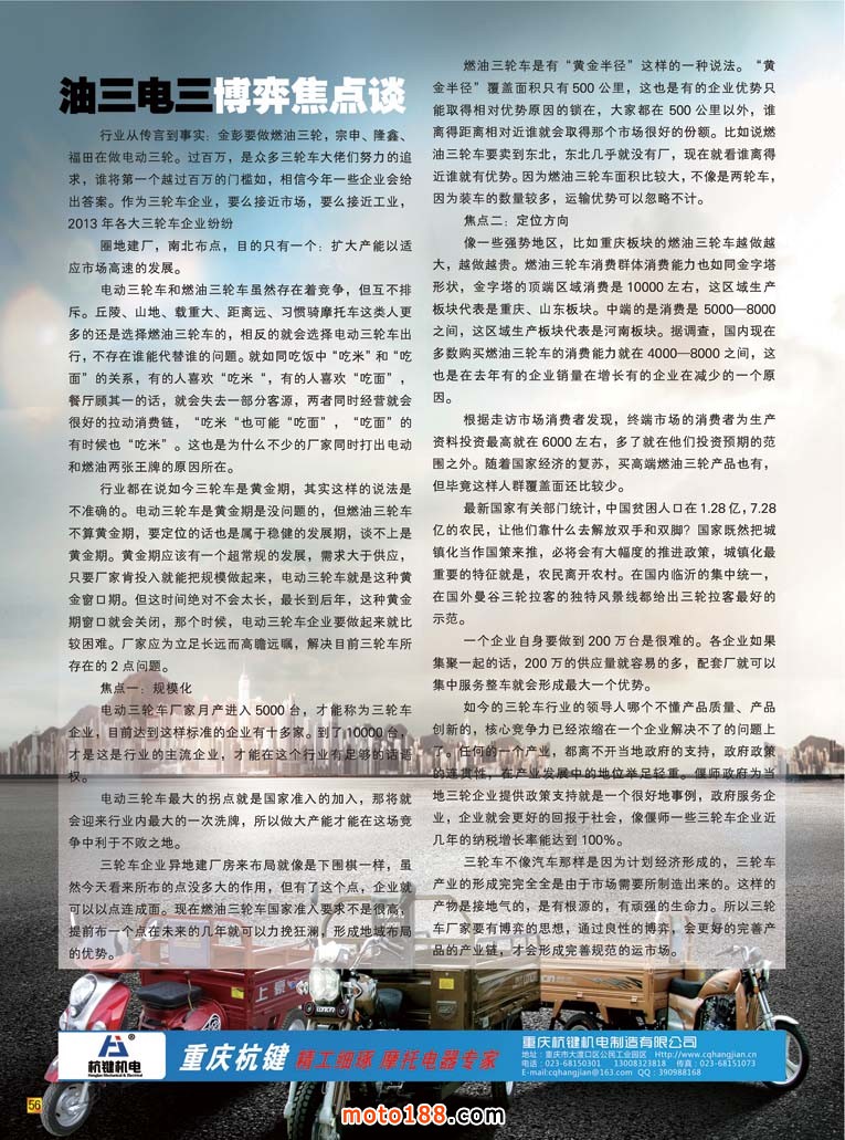從去年年底,我們的雜志進行了形式上改變和內容上的改變。從摩托車配件引伸到電動車、三輪車和小型通機,這是根據目前摩托車生產廠家和市場的變化而作的調整。這些工作實際是從去年11月份開始,到現在正好是半年。經過改變后除了面目一新外,更是在技術普及和產業引伸方面下了功夫,我們的努力在上半年已經得到部分的映證。今年我們制作的雜志、會刊、指南在廣告數量上都有一個新的突破,一舉扭轉了去年下半年的下滑勢頭。尤其今年第四期雜志,我們的后彩的廣告價格對于只做會期的企業進行了上調,廣告量不僅沒有減少,反而有所增加,在會期我們向同仁展示我們的勞動成果時,大家一致認為我們工作實在。
