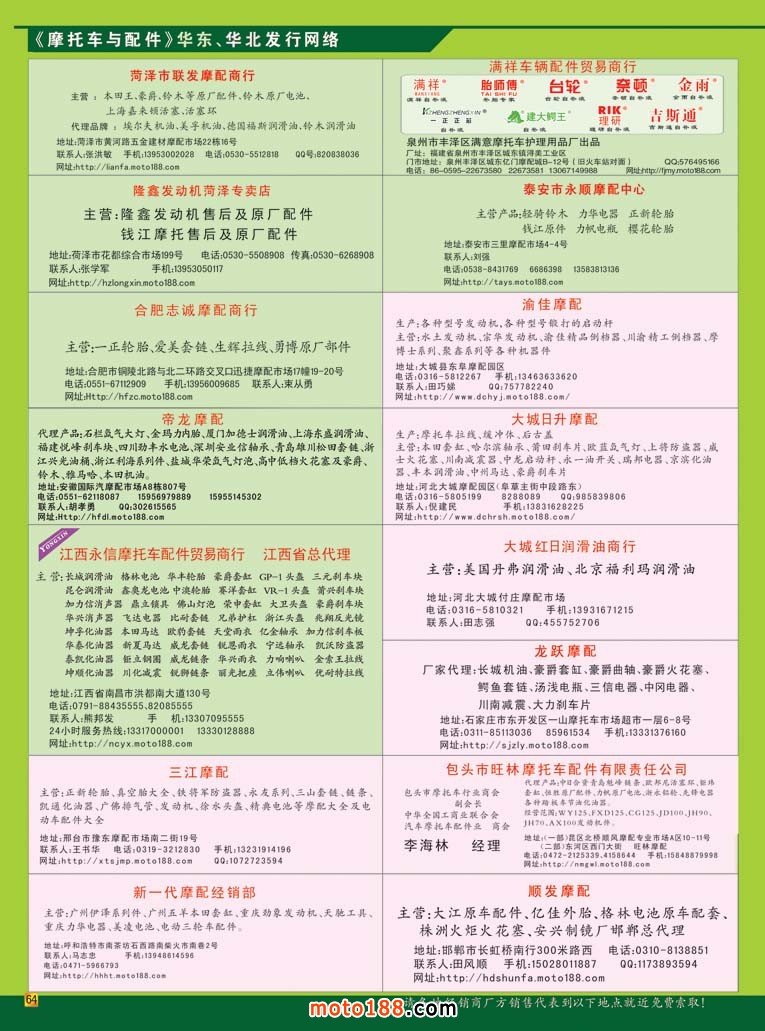 “沉舟側畔千帆過,病樹前頭萬木春”,半年的改版給我們帶來了良好的轉變,但我們不能固步自封,滿足現狀。會后我們就全行業形勢作了一個冷靜地思考,我們從五月份以后,對我們雜志再作一些微調:在做好摩配信息服務的同時,加大向電動車及新能源產業進軍的步伐;這次刊頭作了新的設計,突出了電動車產業,電動車涉及電動二輪、三輪、四輪;摩托車延伸向小型通機及三輪摩托車。每期我們在內容上區分各個主題,摩托車配件、電動車及配件、三輪和通機,版面比例為6422。這期我們精選了其它三個行業的信息,并用專題形式報道。今年六月中旬我們還將參加常州舉辦的電動車三輪車會議,八月上旬參加在鄭州舉辦的三輪車行業會議。在我們江、浙、滬長三角地區電動車產品既是主市場也是主產區,我們要充分利用這地域優勢做深做透。我們已經著手改版我們專業的電動車網站, www.moto189.com。通過一段時間的努力,將它做成m.zjsoxnet.com一樣的行業大型網站;同時我們先天的發行網絡優勢,可以通過這個網絡發行到各省會城市市場,因為這些市場基本上是電動車和摩托車配件混生的;在江浙滬地區,完成主要廠家的數據庫整理和完善并逐步發行到位。我想,通過一年的努力,我們在這些行業也會成為有影響力的媒體,我們有信心做好這項工作。在目前低迷的市場狀況下,我們增加了開拓市場的人員,將這些工作做實做透;同時為了我們的雜志能發行到這些新行業企業的手中,我們已經增加了三分之一的印量。以后版本的《市場指南》我們也會將電動車企業一并收錄進來,明年的春天就可以見證至我們的努力成果。