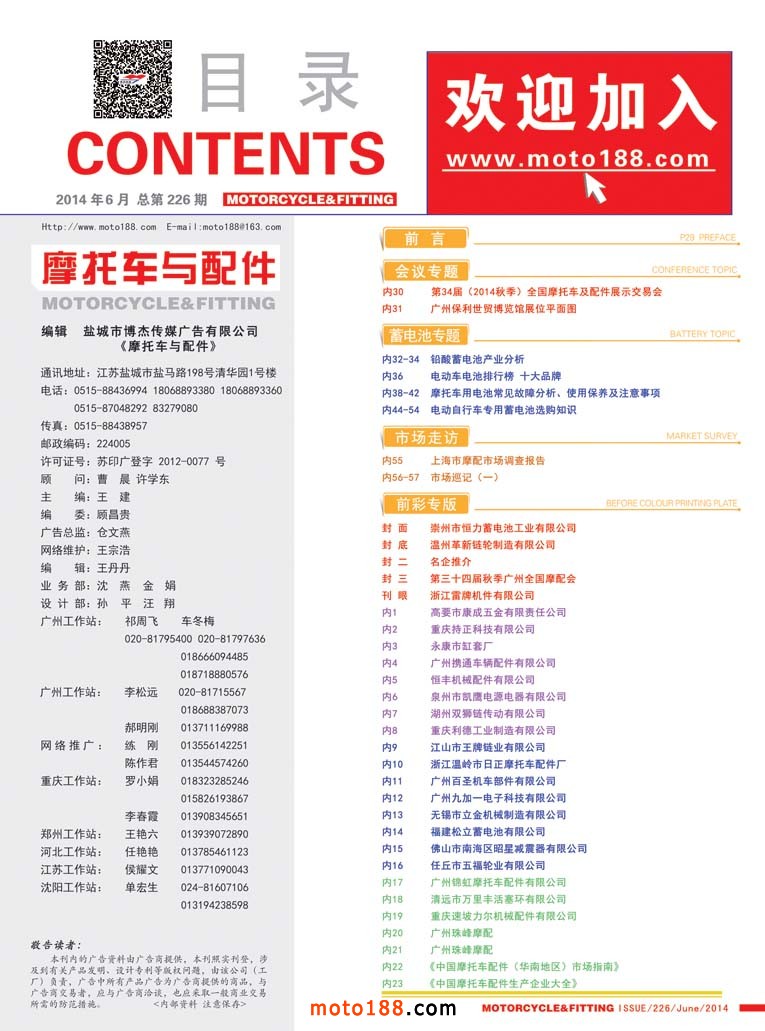 這一期是電池的專題,是摩托車和電動車都必須要用的重要部件。我們從龐雜的資料中精選了十四頁內容,其中有一篇是由企業提供的稿件。我們歡迎企業能踴躍投稿,將你們的技術和經驗與行業共同分享,提升行業整體素質,同時也可以通過我們這個平臺來提升企業的知譽度。