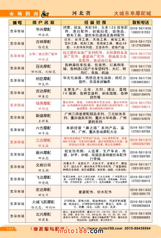 歷時半年,橫跨十三省市的《北方市場指南》今天終于成書,奉獻給行業企業,這本書是我們《中國摩托車配件市場指南》的第三個分冊,也是工作量和難度最大的一本書,為了資料的準確,我們雜志社全體內部工作人員,在炎熱的夏季里,孜孜不倦地工作,先后冒著酷暑兵分三 路去西北、華北、東北的省份,由于夏季暑運高峰,交通也十分不便,有時為了趕路,甚至乘了三十多個小時無空調的大巴車。今天看到這本混合我們汗水和心血的《北方市場指南》我們感覺這份果實更加不同尋常,彌加珍貴。