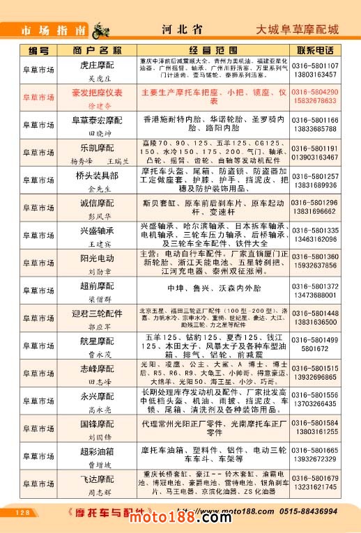 歷時半年,橫跨十三省市的《北方市場指南》今天終于成書,奉獻給行業企業,這本書是我們《中國摩托車配件市場指南》的第三個分冊,也是工作量和難度最大的一本書,為了資料的準確,我們雜志社全體內部工作人員,在炎熱的夏季里,孜孜不倦地工作,先后冒著酷暑兵分三 路去西北、華北、東北的省份,由于夏季暑運高峰,交通也十分不便,有時為了趕路,甚至乘了三十多個小時無空調的大巴車。今天看到這本混合我們汗水和心血的《北方市場指南》我們感覺這份果實更加不同尋常,彌加珍貴。