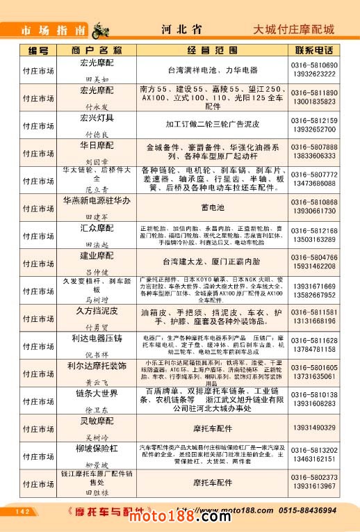 歷時半年,橫跨十三省市的《北方市場指南》今天終于成書,奉獻給行業企業,這本書是我們《中國摩托車配件市場指南》的第三個分冊,也是工作量和難度最大的一本書,為了資料的準確,我們雜志社全體內部工作人員,在炎熱的夏季里,孜孜不倦地工作,先后冒著酷暑兵分三 路去西北、華北、東北的省份,由于夏季暑運高峰,交通也十分不便,有時為了趕路,甚至乘了三十多個小時無空調的大巴車。今天看到這本混合我們汗水和心血的《北方市場指南》我們感覺這份果實更加不同尋常,彌加珍貴。