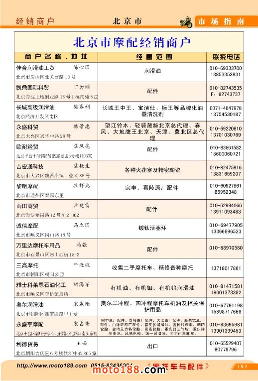 歷時半年,橫跨十三省市的《北方市場指南》今天終于成書,奉獻給行業企業,這本書是我們《中國摩托車配件市場指南》的第三個分冊,也是工作量和難度最大的一本書,為了資料的準確,我們雜志社全體內部工作人員,在炎熱的夏季里,孜孜不倦地工作,先后冒著酷暑兵分三 路去西北、華北、東北的省份,由于夏季暑運高峰,交通也十分不便,有時為了趕路,甚至乘了三十多個小時無空調的大巴車。今天看到這本混合我們汗水和心血的《北方市場指南》我們感覺這份果實更加不同尋常,彌加珍貴。