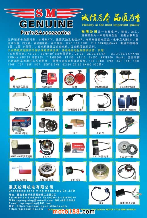 2012年春,行業最具影響力的“春季全摩會”4月27日在重慶召開,我們將在特殊的時間,特 殊的地域,特殊的市場,推出獨具特色的《中國摩托車配件·西南市場指南》,為您的經營提供方向,為您的騰飛插上翅膀。