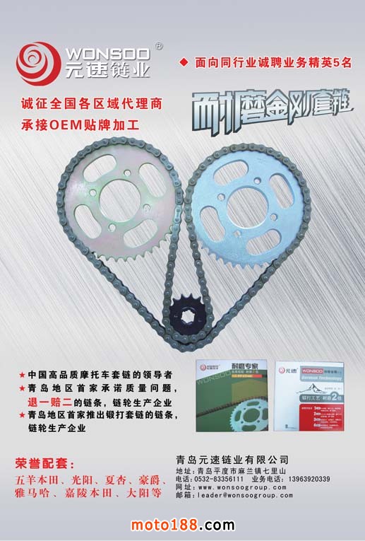 目前本系列書籍已成功出版了三個系列,由于我們的真心付出,市場的反響也越來越好,本來我們計(jì)劃在全國摩配會前截稿,由于廣告突破了我們的計(jì)劃,我們提前一個月出版,本書 的信息量也比以往大,廣告量如不控制將會爆發(fā)性增長,書太厚不方便大家的使用,因而我們 毅然提前停止了廣告的征集。