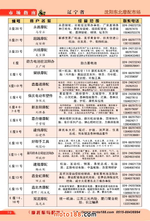 歷時半年,橫跨十三省市的《北方市場指南》今天終于成書,奉獻給行業企業,這本書是我們《中國摩托車配件市場指南》的第三個分冊,也是工作量和難度最大的一本書,為了資料的準確,我們雜志社全體內部工作人員,在炎熱的夏季里,孜孜不倦地工作,先后冒著酷暑兵分三 路去西北、華北、東北的省份,由于夏季暑運高峰,交通也十分不便,有時為了趕路,甚至乘了三十多個小時無空調的大巴車。今天看到這本混合我們汗水和心血的《北方市場指南》我們感覺這份果實更加不同尋常,彌加珍貴。