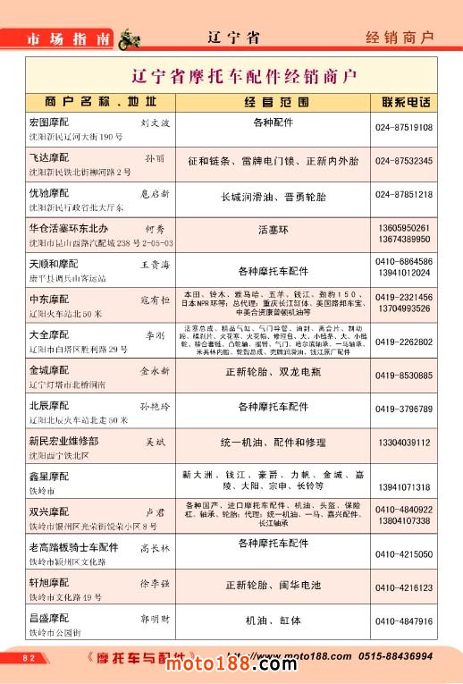 歷時半年,橫跨十三省市的《北方市場指南》今天終于成書,奉獻給行業企業,這本書是我們《中國摩托車配件市場指南》的第三個分冊,也是工作量和難度最大的一本書,為了資料的準確,我們雜志社全體內部工作人員,在炎熱的夏季里,孜孜不倦地工作,先后冒著酷暑兵分三 路去西北、華北、東北的省份,由于夏季暑運高峰,交通也十分不便,有時為了趕路,甚至乘了三十多個小時無空調的大巴車。今天看到這本混合我們汗水和心血的《北方市場指南》我們感覺這份果實更加不同尋常,彌加珍貴。