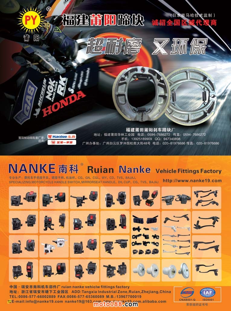 內112 福建莆田莆陽剎車蹄塊廠/中國瑞安市南科機車部件廠