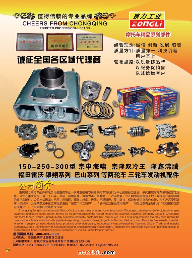 炎熱的夏季終將過去,收獲的秋天在等待我們,從下一期雜志開始,我們就要為廣州全摩會做準備工作了,在這個會上,我們會向全體參會人員奉獻兩本數(shù)據(jù)庫類書籍,一本是生產(chǎn)廠家的《摩托車配件生產(chǎn)企業(yè)大全》,在這一個升級版中,我們新增加十幾個大的摩托車整車生產(chǎn)廠家資料,同時增加二十家電動車生產(chǎn)廠家及十幾家三輪摩托車和三輪電動車廠家,努力根據(jù)市場需要豐富書的內(nèi)容。還有一本就是第二次升級的《華南市場指南》收集廣東和海南兩省的經(jīng)銷商資料匯總,其中,廣東省的廣州市的市場用中英文出版,目前各項工作正緊張有序的進行,歡迎大家在全摩會期間來廣州保利展館分享我們的勞動果實。春種一粒粟,秋收萬顆籽。
