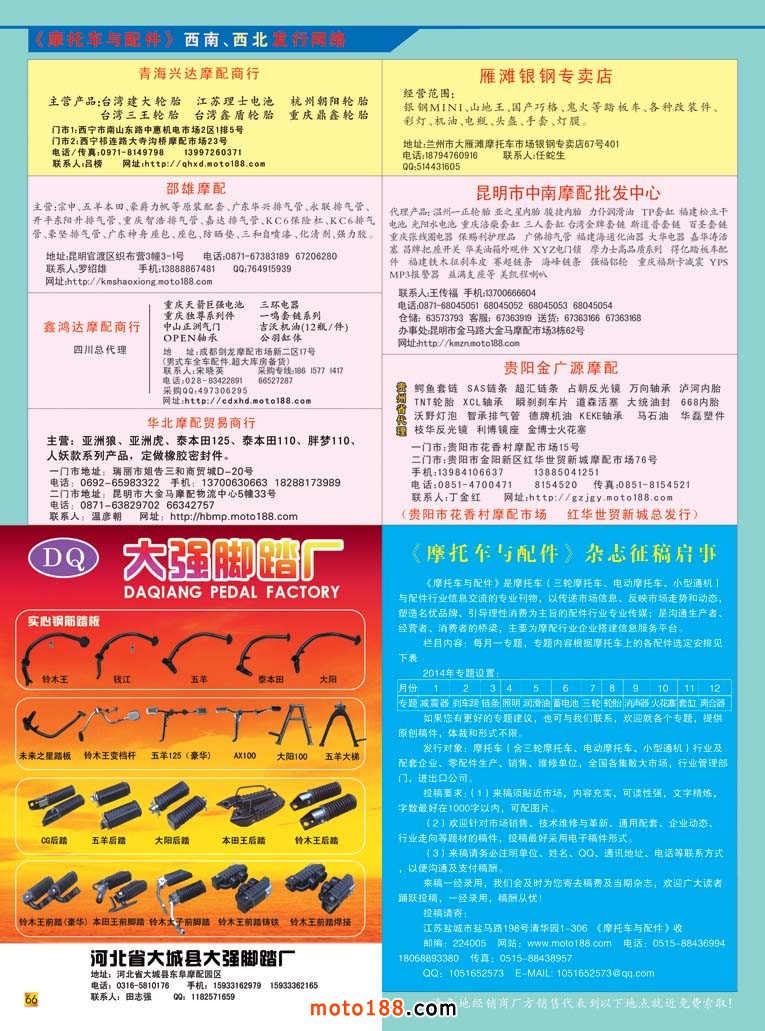 炎熱的夏季終將過去,收獲的秋天在等待我們,從下一期雜志開始,我們就要為廣州全摩會做準備工作了,在這個會上,我們會向全體參會人員奉獻兩本數據庫類書籍,一本是生產廠家的《摩托車配件生產企業大全》,在這一個升級版中,我們新增加十幾個大的摩托車整車生產廠家資料,同時增加二十家電動車生產廠家及十幾家三輪摩托車和三輪電動車廠家,努力根據市場需要豐富書的內容。還有一本就是第二次升級的《華南市場指南》收集廣東和海南兩省的經銷商資料匯總,其中,廣東省的廣州市的市場用中英文出版,目前各項工作正緊張有序的進行,歡迎大家在全摩會期間來廣州保利展館分享我們的勞動果實。春種一粒粟,秋收萬顆籽。