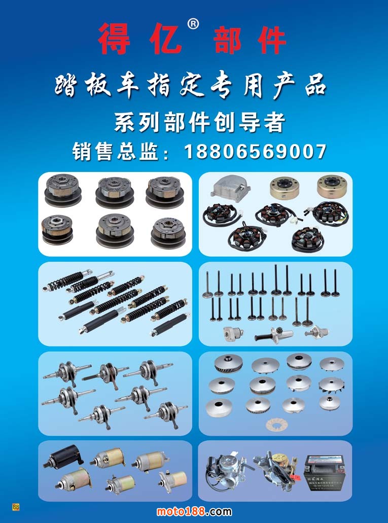 目前我們摩托車配件行業(yè)經(jīng)過長期的調(diào)整,許多企業(yè)紛紛開展多種經(jīng)營,向多個行業(yè)延伸,今年6月在常州的展會上,我們遇到了不少過去從事摩托車配件生產(chǎn)的企業(yè),其配件給電動車企業(yè)配套,一般還都干得比較紅火,我們也在此祝福他們。本來就是天無絕人之路,今年我們?nèi)チ艘恍┑貐^(qū)市場,各地區(qū)的市場都有不同程度的變化,純摩托車配件市場已經(jīng)越來越少,混合經(jīng)營的越來越多,一般市場總體規(guī)模在擴大,但我們純經(jīng)營摩托車配件企業(yè)正逐漸減少,所以我們要適應(yīng)市場,適應(yīng)消費者。