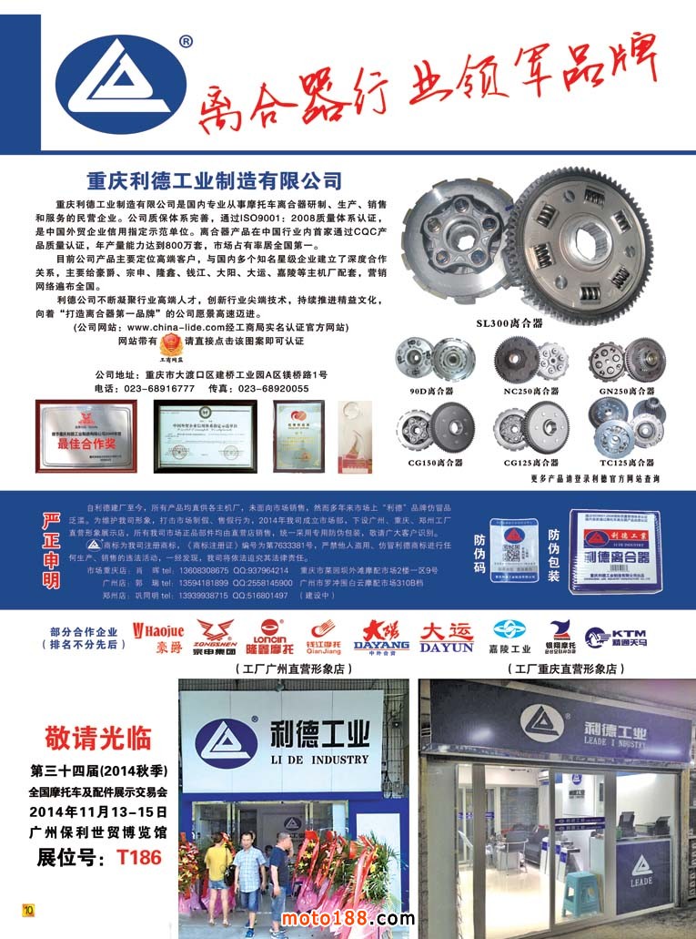 全摩會還有2個多月就在廣州召開了,這次會上我們將奉獻給大家的是第12次升級的《中國摩托車配件生產企業大全》在這本書中。我們新增了目錄銷售排名前10-20名的摩托車整車生產企業,二輪電動車生產企業、燃油和電動三輪生產企業的名錄,方便大家在增加經營的同時,有所選擇和參考。《華南市場指南》含廣東和海南兩省市場經銷商戶的資料,其中的廣州白云區羅沖圍一帶的市場是用中英文雙語編排,方便外商的閱讀;其余例行的十一期雜志和外貿報紙;另外還有部分華東和西北地區的新的市場指南(已經在南京和西安會議首發)。如果有興趣從事新能源汽車業務的企業也可拿到《新能源車》雜志。這是我們新出的雜志,具體可去moto189網站上瀏覽到全部的內容,在此不多贅述。記住廣州再見,帶上你的名片到1075展位領書去!