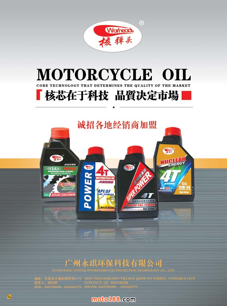 全摩會(huì)還有2個(gè)多月就在廣州召開(kāi)了,這次會(huì)上我們將奉獻(xiàn)給大家的是第12次升級(jí)的《中國(guó)摩托車(chē)配件生產(chǎn)企業(yè)大全》在這本書(shū)中。我們新增了目錄銷(xiāo)售排名前10-20名的摩托車(chē)整車(chē)生產(chǎn)企業(yè),二輪電動(dòng)車(chē)生產(chǎn)企業(yè)、燃油和電動(dòng)三輪生產(chǎn)企業(yè)的名錄,方便大家在增加經(jīng)營(yíng)的同時(shí),有所選擇和參考。《華南市場(chǎng)指南》含廣東和海南兩省市場(chǎng)經(jīng)銷(xiāo)商戶的資料,其中的廣州白云區(qū)羅沖圍一帶的市場(chǎng)是用中英文雙語(yǔ)編排,方便外商的閱讀;其余例行的十一期雜志和外貿(mào)報(bào)紙;另外還有部分華東和西北地區(qū)的新的市場(chǎng)指南(已經(jīng)在南京和西安會(huì)議首發(fā))。如果有興趣從事新能源汽車(chē)業(yè)務(wù)的企業(yè)也可拿到《新能源車(chē)》雜志。這是我們新出的雜志,具體可去moto189網(wǎng)站上瀏覽到全部的內(nèi)容,在此不多贅述。記住廣州再見(jiàn),帶上你的名片到1075展位領(lǐng)書(shū)去!