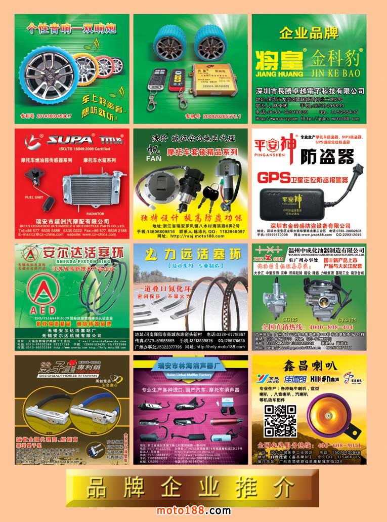 全摩會(huì)還有2個(gè)多月就在廣州召開(kāi)了,這次會(huì)上我們將奉獻(xiàn)給大家的是第12次升級(jí)的《中國(guó)摩托車配件生產(chǎn)企業(yè)大全》在這本書(shū)中。我們新增了目錄銷售排名前10-20名的摩托車整車生產(chǎn)企業(yè),二輪電動(dòng)車生產(chǎn)企業(yè)、燃油和電動(dòng)三輪生產(chǎn)企業(yè)的名錄,方便大家在增加經(jīng)營(yíng)的同時(shí),有所選擇和參考。《華南市場(chǎng)指南》含廣東和海南兩省市場(chǎng)經(jīng)銷商戶的資料,其中的廣州白云區(qū)羅沖圍一帶的市場(chǎng)是用中英文雙語(yǔ)編排,方便外商的閱讀;其余例行的十一期雜志和外貿(mào)報(bào)紙;另外還有部分華東和西北地區(qū)的新的市場(chǎng)指南(已經(jīng)在南京和西安會(huì)議首發(fā))。如果有興趣從事新能源汽車業(yè)務(wù)的企業(yè)也可拿到《新能源車》雜志。這是我們新出的雜志,具體可去moto189網(wǎng)站上瀏覽到全部的內(nèi)容,在此不多贅述。記住廣州再見(jiàn),帶上你的名片到1075展位領(lǐng)書(shū)去!